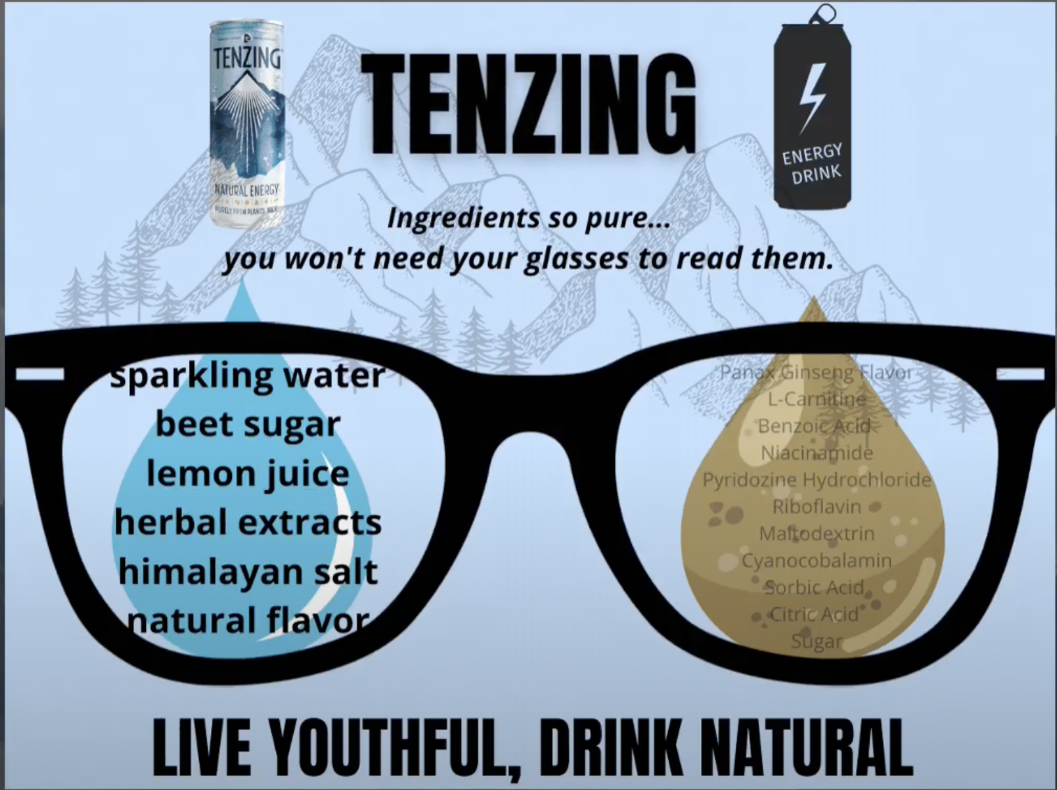 Proposition: Tenzing is an all-natural energy drink that is good for you at any age.