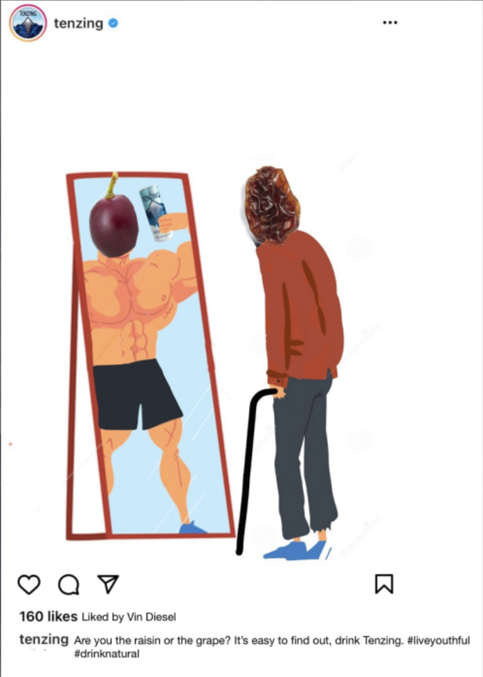 Use well-known grape and raisin analogy to reach target audience on instagram. Use of hashtags will generate publicity.